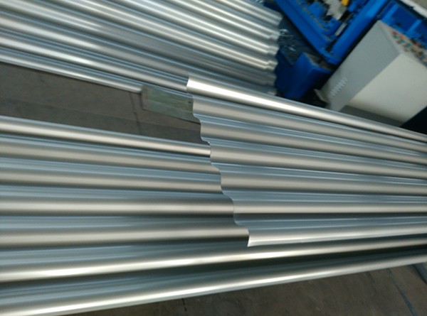 首先做一V字型材料,可選用不同的材料和規(guī)格,視實(shí)際情況而定.做接水處安裝在底部后在上面鋪放復(fù)合彩鋼瓦。